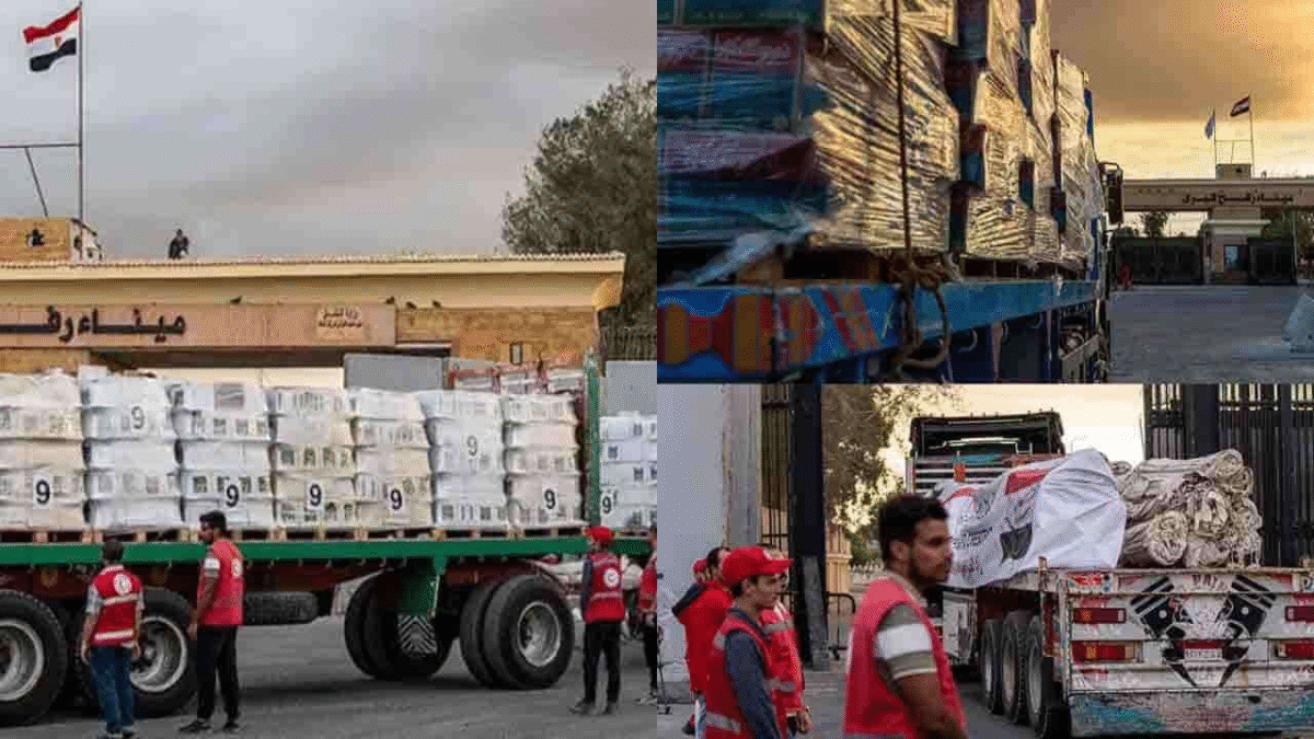 எகிப்தின் ஊடாக தெற்கு காசாவின் ரஃபா எல்லையை கடக்கும் பகுதிக்கு இன்று காலை மனிதாபிமான உதவிப் பொருட்களை தாங்கிய லொறிகள் அடைந்துள்ளதாக சர்வதேச தகவல்கள் தெரிவிக்கின்றன.