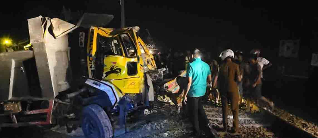 கிளிநொச்சி முகமாலை வேம்படுகேணி பகுதியில் ரயில் கடவைக்கு அருகில் 02.10.2025 இரவு இரண்டு டிப்பர் வாகனங்கள் நேருக்கு நேர் மோதி விபத்து ஏற்பட்டுள்ளது.