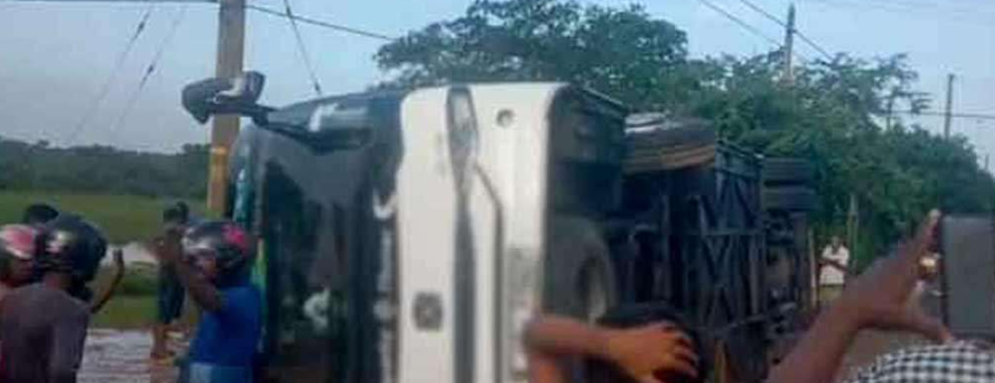அக்கரைப்பற்றிலிருந்து திருகோணமலை நோக்கிப் பயணித்த தனியார் சொகுசு பேருந்து ஒன்று வீதியில் கவிழ்ந்து விபத்துக்குள்ளானதில் 14 பேர் காயமடைந்துள்ளனர்.