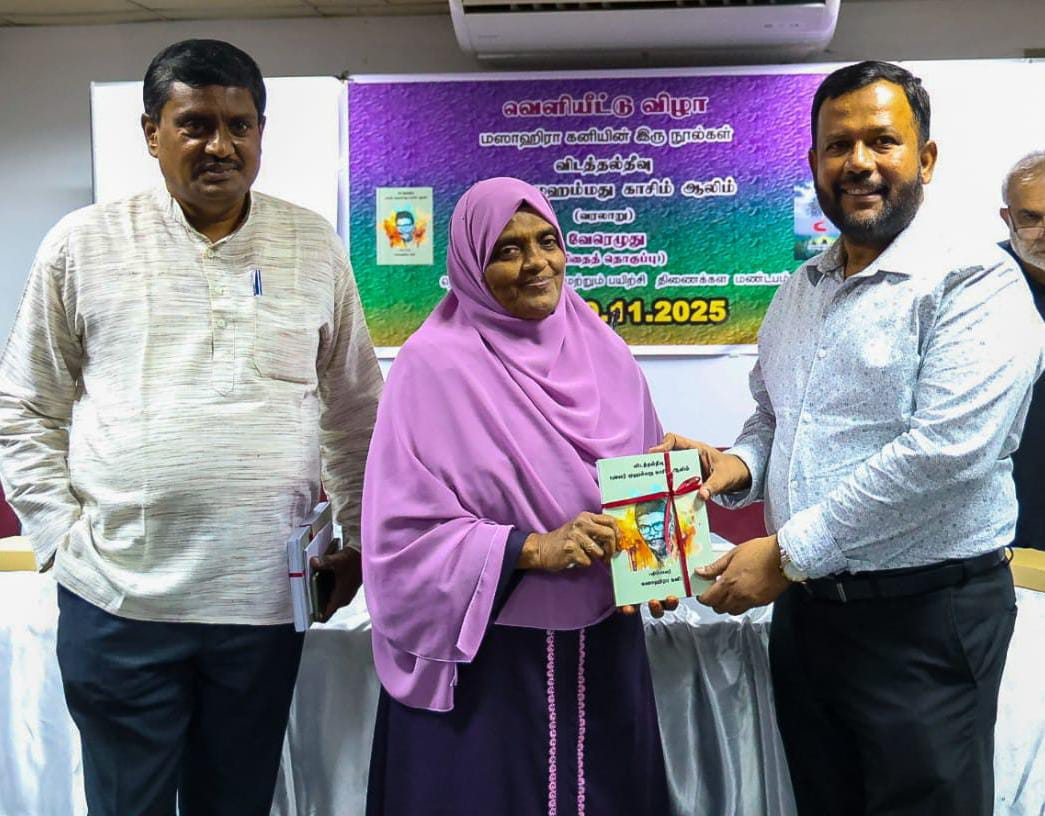 November 11, 2025 0 Comment எழுத்தாளர் கவிதாயினி மஸாஹிரா கனியின் “விடத்தல்தீவு புலவர் முஹம்மது காசிம் ஆலிம்” வரலாறு, “வேரெழுது” கவிதைத் தொகுப்பு இரு நூல்கள் வெளியீடு உள்ளூர்