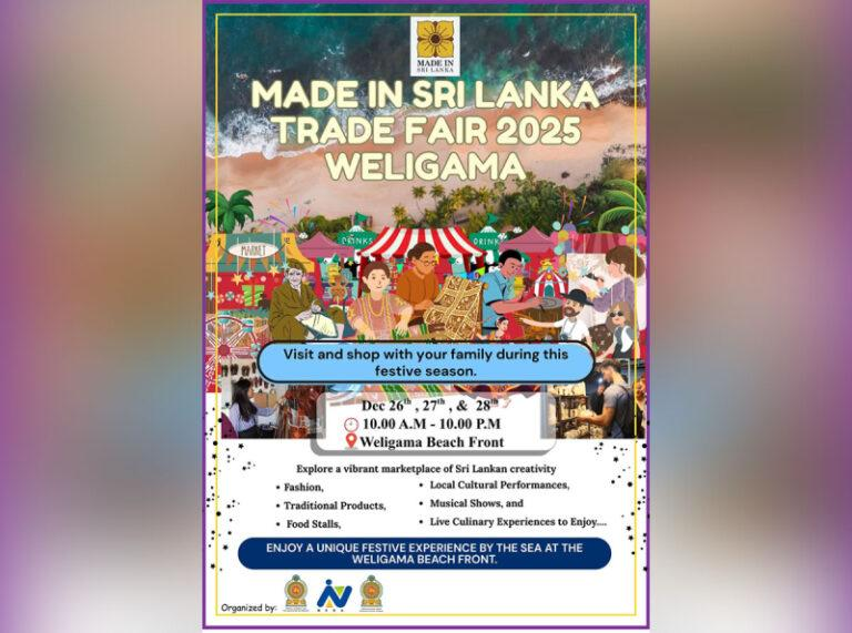 வெலிகம: உள்ளூர் மற்றும் சர்வதேச சந்தைகளுக்கு அணுகலை வழங்குவதன் மூலமும், உள்நாட்டு உற்பத்தியை வலுப்படுத்துவதன் மூலமும் உள்ளூர் தொழில்முனைவோரை ஆதரிப்பதை நோக்கமாகக் கொண்ட, Made in Sri Lanka வர்த்தக கண்காட்சி டிசம்பர் 26 வெள்ளிக்கிழமை மாத்தறை மாவட்டத்தில் உள்ள வெலிகம கடற்கரையில் தொடங்கியது.